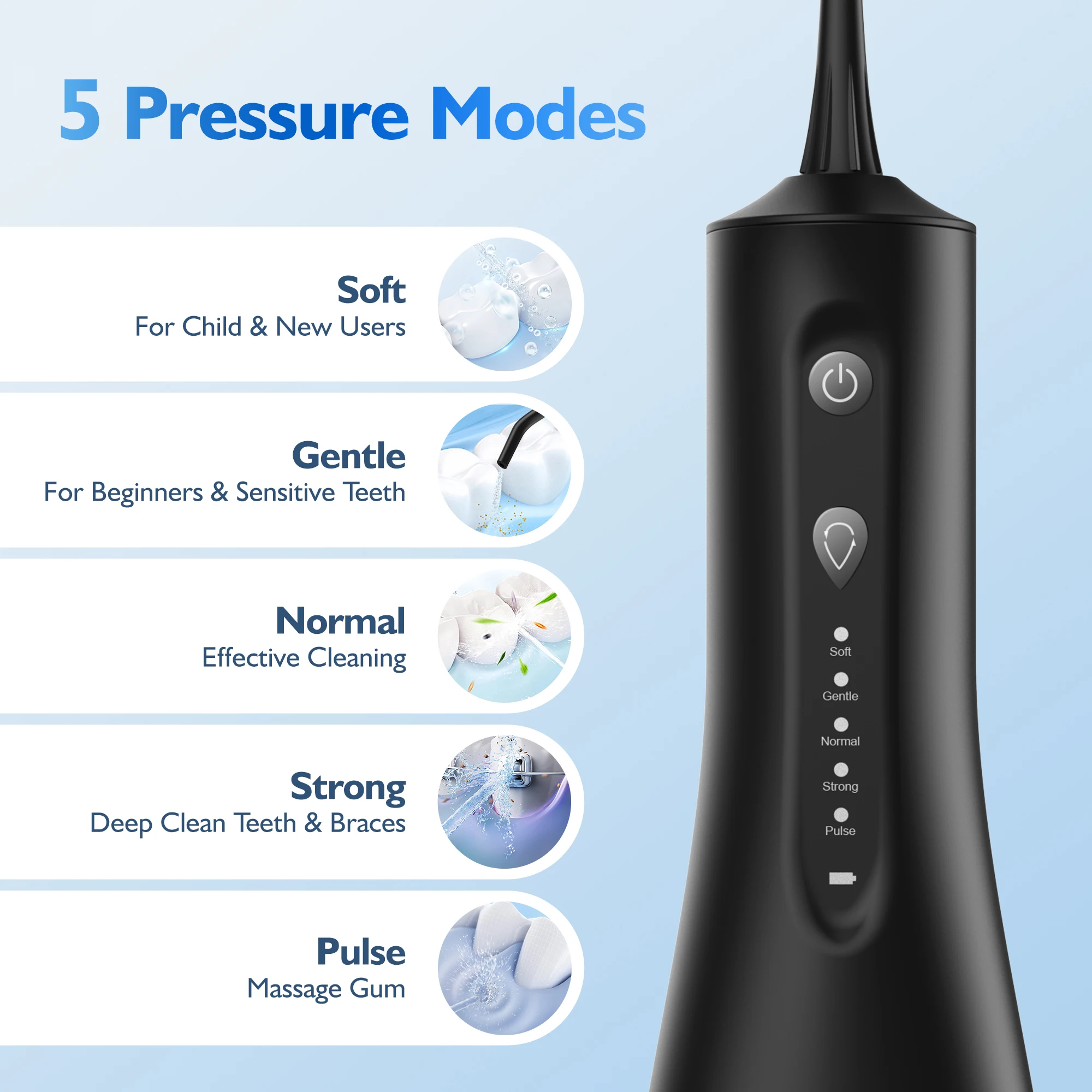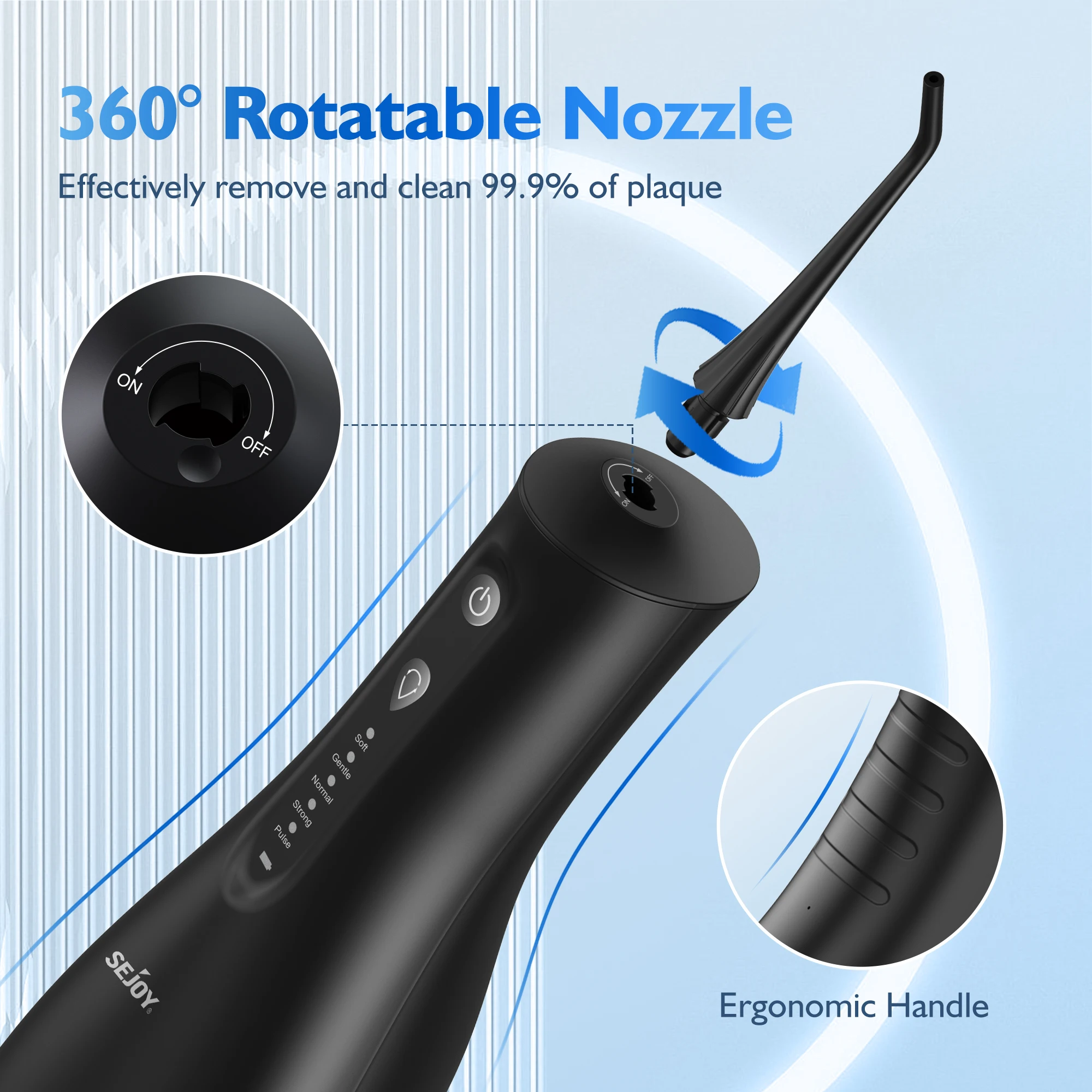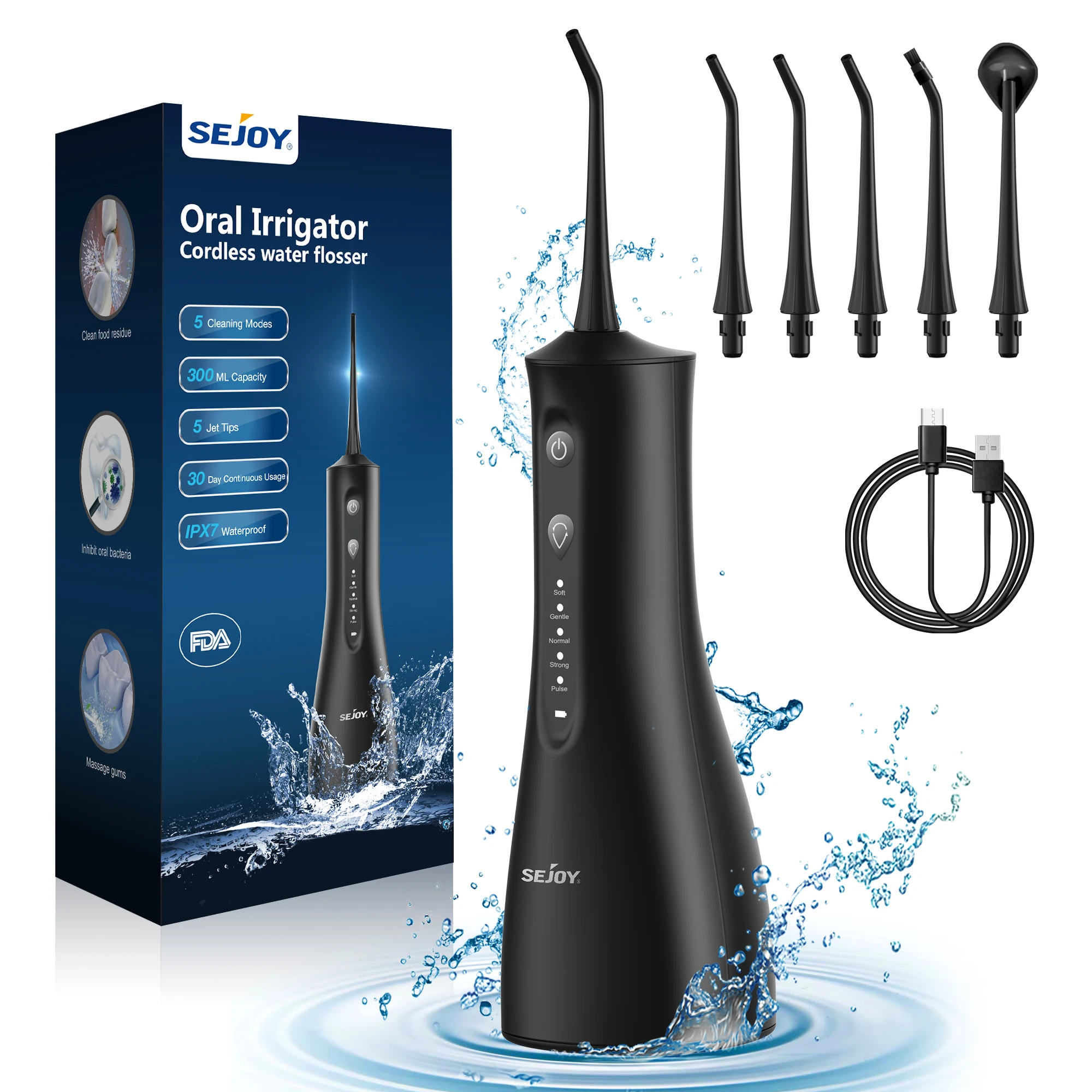 Hydropulseur SEJOY Jet Dentaire Professionnel, Irrigateur Oral Portable et Rechargeable 300ml IPX7 Étanche 5 Modes