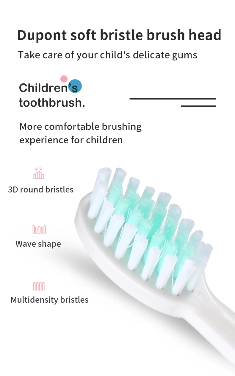 Tête adaptée : Les têtes de brossage sont conçues pour s'adapter aux petites bouches et protéger les gencives sensibles des enfants.